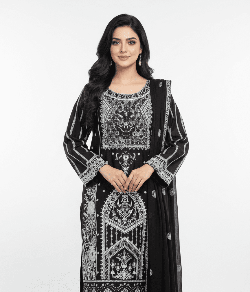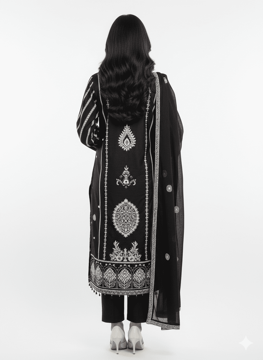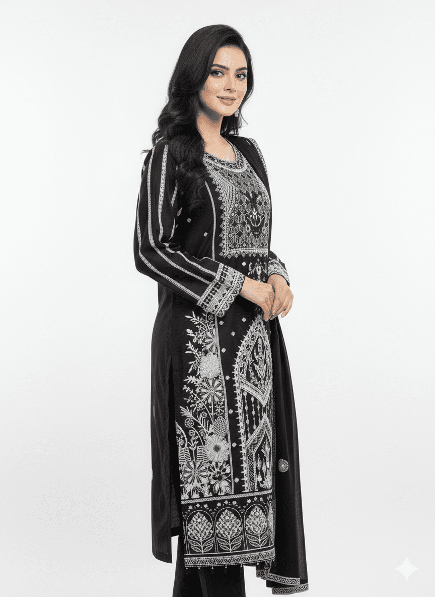 This 3-piece ladies suit is designed to give a stylish, elegant, and attractive look while keeping comfort in mind. The set includes a beautiful kurta and matching bottom, creating a neat and graceful outfit that is easy to wear and style.