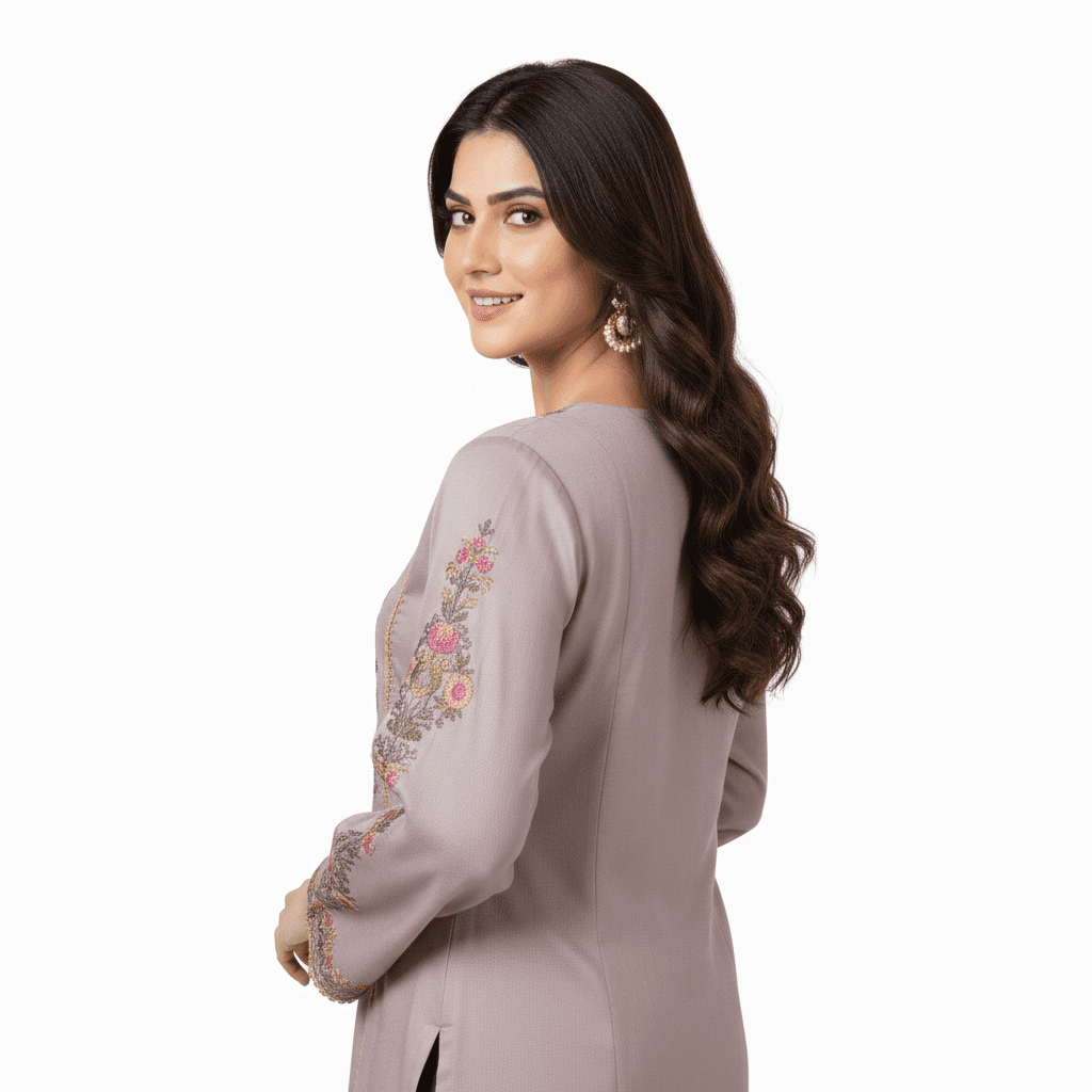This 3-piece ladies suit is designed to give a stylish, elegant, and attractive look while keeping comfort in mind. The set includes a beautiful kurta and matching bottom, creating a neat and graceful outfit that is easy to wear and style.